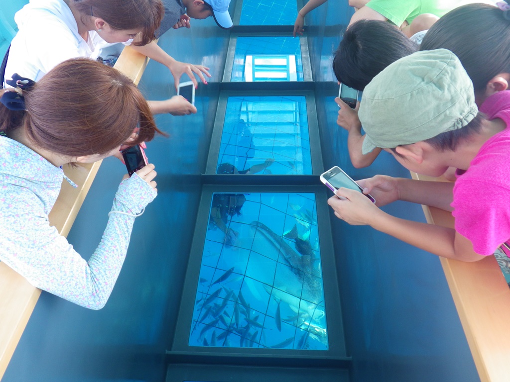 □透過船底設計的透明玻璃欣賞海底世界,還有精彩的鯨鯊餵食秀!